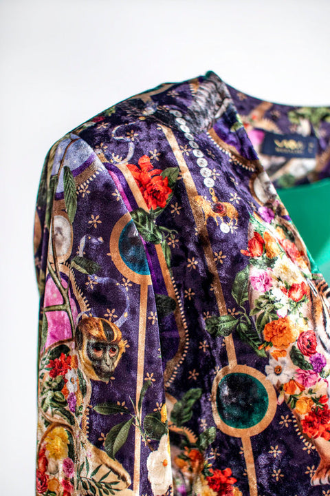 Velvet Purple India Kimonos are authentic ready-to-wear masterpieces, a fusion of textures, colors, and exquisite details. Each print is inspired by the unparalleled beauty of nature and mysticism, creating a unique and captivating style.
