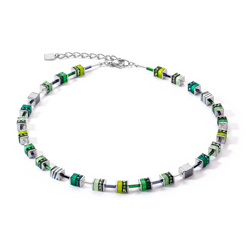 Add a pop of color to this necklace in fashionable sparkling green. Whether it is worn for a day at the office or for an evening out, this colorful statement piece will add a special final addition to your look.
